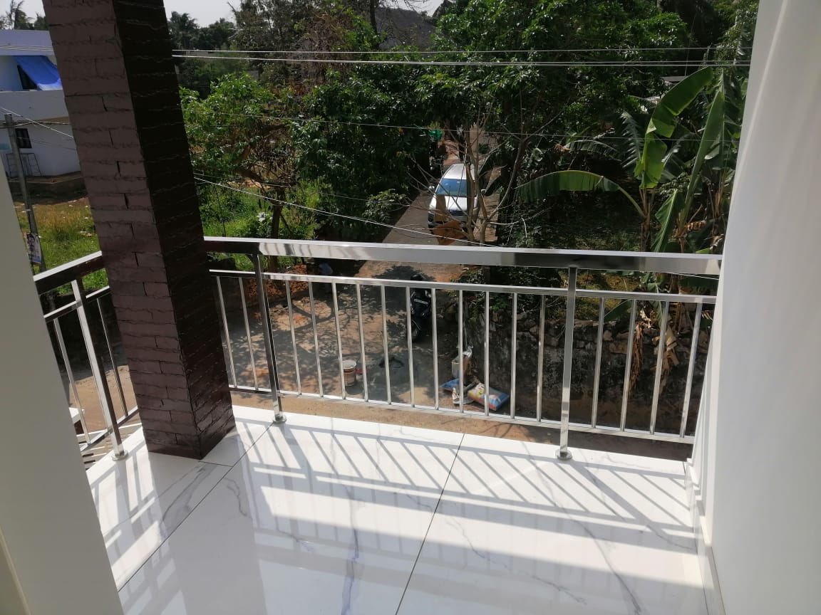 3bhk semi furnished house for sale in Nellikunnu. Good residential area, total land area of 4 cent,built up area 1600sqft. 3 bedrooms and 3 attacthed bathrooms, newly built house.Compound wall, tar road frontage, well water facility available. Price-66 Lacs(Negotiable).