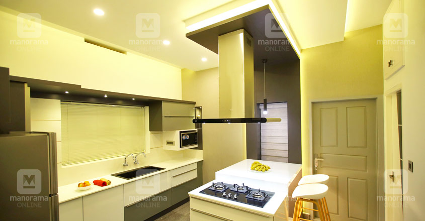 Newly built house with 4bed rooms ,5 bathrooms with additional pooja room. Fully furnished. Location At Elthuruth, Thrissur, Kerala. 2 living rooms,with modern furniture,courtyard inside house, wardrobes are made of lacquered glass. Island kitchen with hood n hob..kitchen cabin with lacquered glass..all bathroom fittings are branded..full floor granite..landscaping done in front..modern style compound wall..