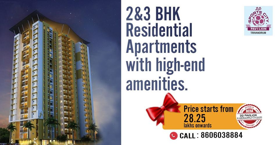 The premium 2 BHK and 3 BHK Apartments in DD Sports City Pavilion have been constructed to showcase the true sense of elegance, excellence and luxury. The residents of these Residential Apartments in Trivandrum enjoy a contemporary lifestyle which most of us desires. DD Sports City Pavilion offers you deluxe range of beautiful Apartments at Pallipuram in Trivandrum. The DD Sports City Pavilion is spread over an area of 1.25 acres with a starting price of just Rs . 29.79 lakhs. This concept of premium housing in DD Sports City Pavilion is launched by the team of renowned builders, Desai Homes. Located at the most desired location of Trivandrum,