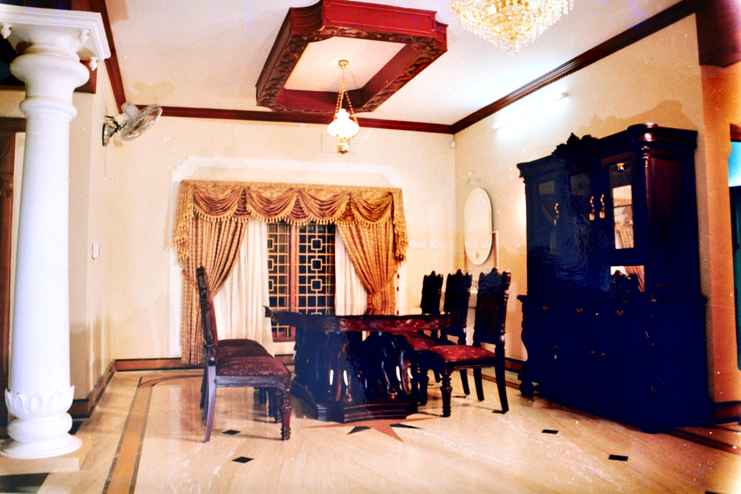 Dining Room: 1 dining area with 6 seater table and cutlery shelf on Ground floor (Elephant Carving done on table)
