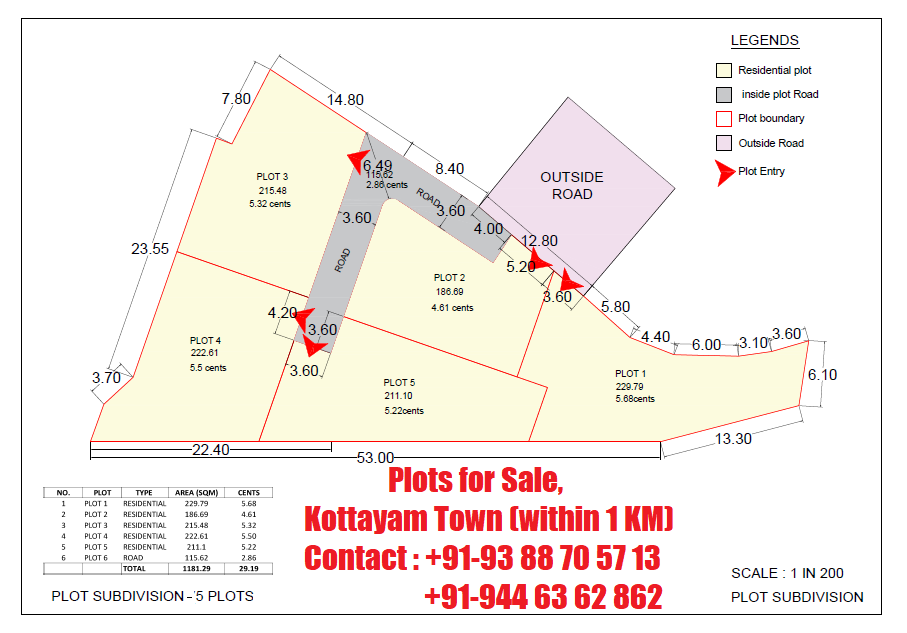 5/10/30 cents Plots (House/Commercial purpose) for Sale at Kottayam Town (within 1 KM).