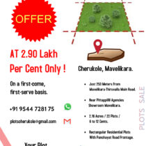 Plots For Sale Cherukole, Mavelikara, Flood Free Area – 2.90 lakhs